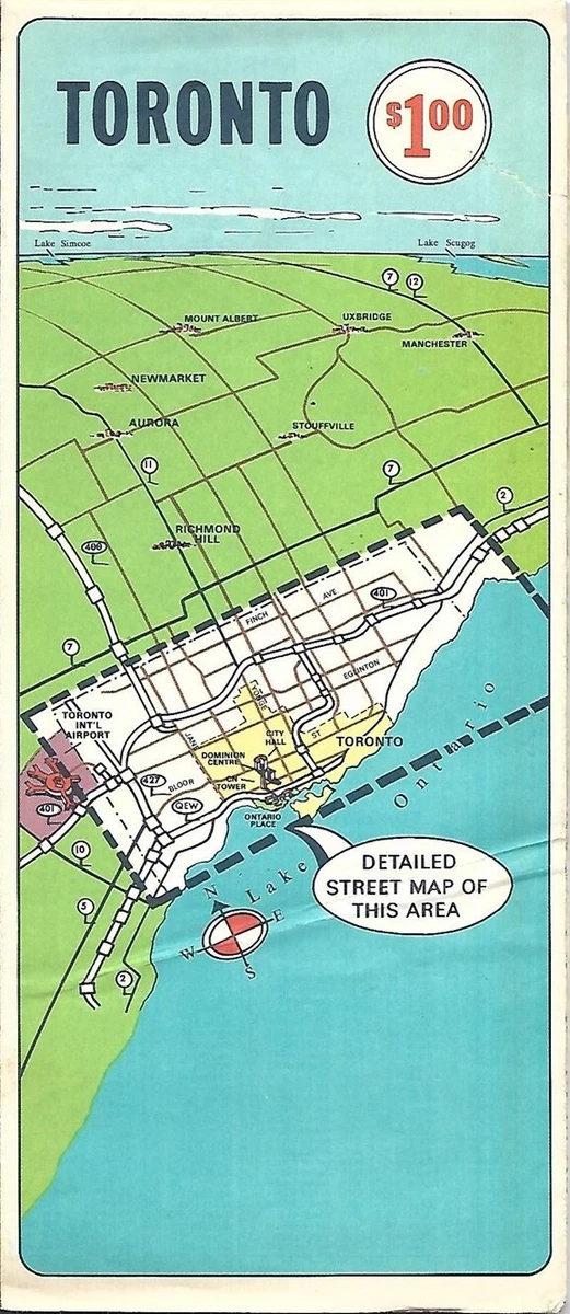 1975 Road Map TORONTO Hamilton Scarborough York Etobicoke Ontario