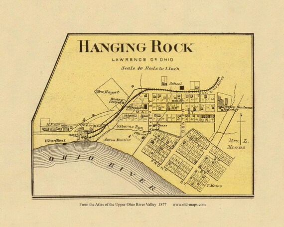 Hanging Rock 1877 Old Town Map Lawrence County Ohio Valley Etsy