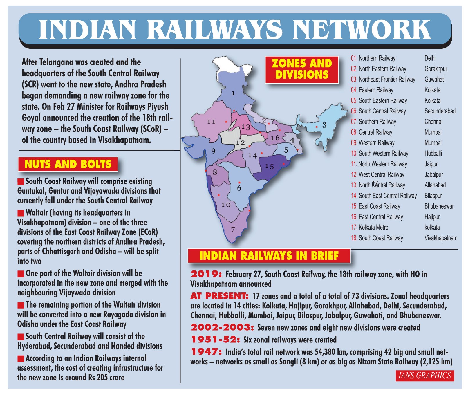 Railway Zone In India Map Zones and divisions of Indian Railways Wikipedia: This commissioning brought this western Odisha town on the railway map. On Friday, CRS inspected the safety parameters of the newly laid railway track, signalling system, bridges and declared this . Northern Railway, one of India’s 19 railway zones, is planning to open four train-themed restaurants across four rail stations in Delhi, the Hindustan Times has reported. The restaurants will be .