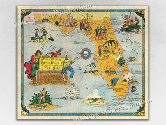 Ye True Chart of Pirate Treasure of Florida Vintage Treasure Map