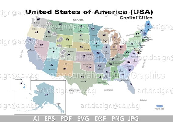 Vector USA State Capital Abbreviation Colored Map Svg Ai Eps Pdf